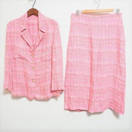 人気ブランドのミッソーニ。セットアップを買取しました。麻素材です。明るくも楽しい気分にしてくれるピンク色。デザインは綺麗め過ぎずラフな感じで動きやすさも期待できます。