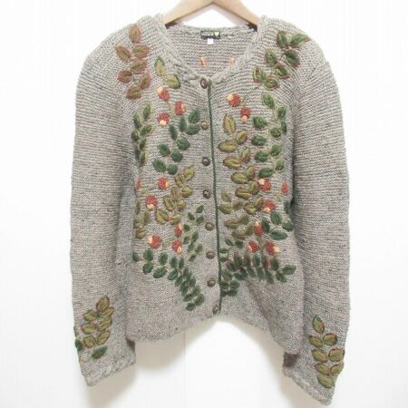 出張買取にてマックデイビッドのカーディガンを買取しました。Lサイズのお品です。優しいグレージュに程よく花咲く刺繍が可愛らしい1枚。ジージャンからプリーツスカートまで合わせていただけます。