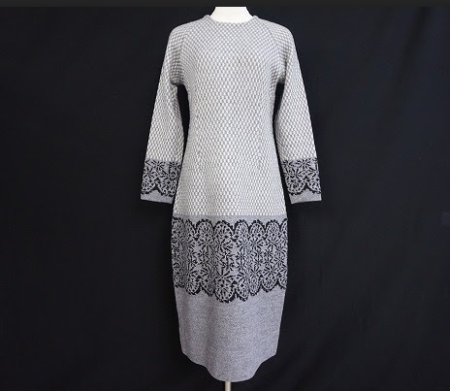 上品な雰囲気のグレーに黒の模様、タイトなシルエットでⅠラインを作り出してスタイル良く魅せてくれます!斉藤都世子のニットは上質なニットを使用している為、着心地抜群で触り心地も抜群です。毛玉も出来にくく手入れの手間もさほどかかりません。着るたびに毛玉取りをして直ぐに穴が開くことはございません。ショート丈カーディガンやロング丈のコートを合わせるとIラインがより強調されオススメです!