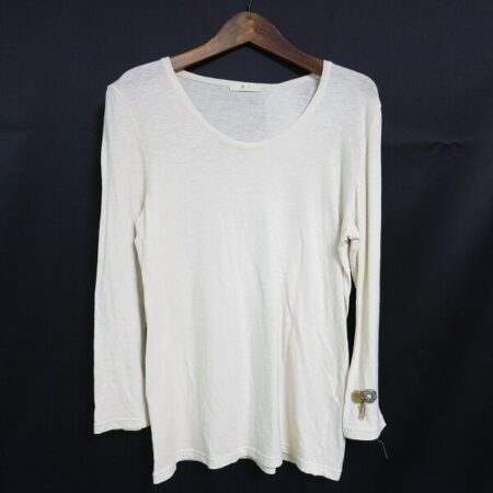 出張買取にて群言堂 根々 カットソーを買取しました。アイボリーカラーのしっとり素材が魅力的なカットソー。袖モチーフも適度に価値を発揮しており楽しめる1点です。