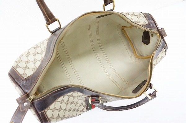 今回、買い取りさせていただいたこちらのバッグは、GGプラスを使用したボストンバッグになります。GGプラスはキャンバス地にPVCをコーティングした生地です。