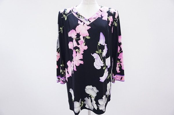そして、美しいグラデーションを持つフラワープリントを、光沢のあるブラックが浮かび上がらせます。レオナールといえば、やはりランのモチーフが一番美しいですね。フロントとバックの境を感じさせない配置は、ランが生き生き咲き誇る様子が上手く表現されています。