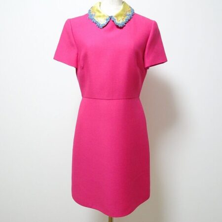 遠目で見ても華があるピンクが綺麗なヴァレンティノのワンピース。出張買取ご利用のお客様より買取しました。黄色と青色の襟が程よく涼し気です。半袖なのでくどくなく楽しく着ていただけるのではないでしょうか。黒のカーディガンなどと合わせるとまた締まった印象になります。