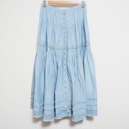 ピンクハウスのスカートを出張買取ご利用のお客様より買取しました。優しい水色にとフリルが見事に可愛い1点。落ち着きもあり優しく包んでくれるような雰囲気が感じ取れます。