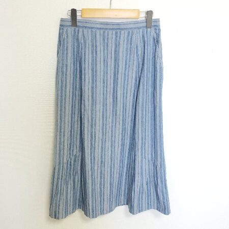 シニア世代から人気の高いバラ色の暮しのスカートを買取しました。サイズはLです。デニム風ではありますが繊細なストライプが綺麗さを演出してくれる1点。気取らずさわやかに楽しめます。