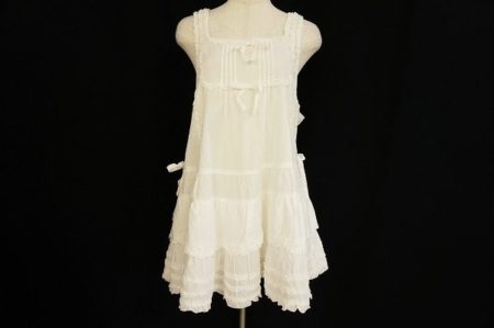 清潔感のあるホワイトで、細やかなフリルやリボンとともに愛らしく、とても上品な一枚です。