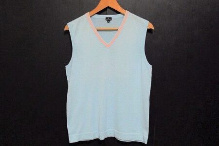 世界的に人気のあるイギリス生まれのブランド『ポールスミス』のスッキリとした水色のベストを買取しました。当店でも利用者が増えている出張買取をご依頼のお客様からお譲りいただきました。見るだけでさわやかな気分にさせてくれるベスト。Vラインのピンクも程よく効いていてよりおしゃれさを際立ててくれます。ジェントルな雰囲気も出していただける1着です。