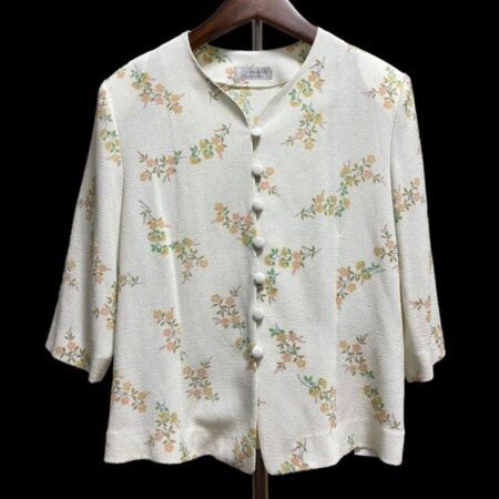 出張買取にて三年坂のジャケットを買取しました。オフホワイトが柔らかくも清潔感を出してくれるありがたいアイテムです。お花も程よい存在感を出しオシャレに決めていただけます。