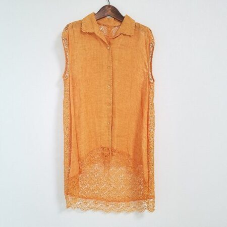伊太利屋のチュニックを買取しました。買取方法を出張買取に選択されたお客様からお譲りいただいたものです。かぎ編みが爽やかさに繋がり色っぽくも嫌味なく着ていただけます。