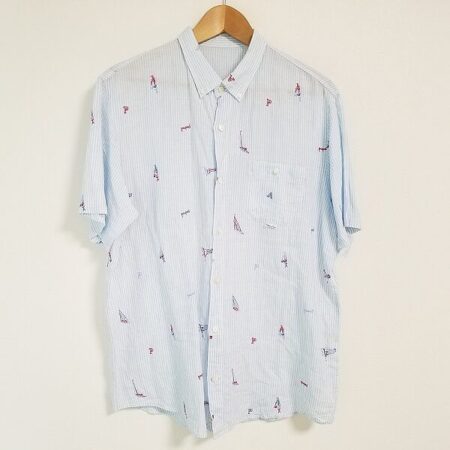 出張買取サービスにてご利用のお客様の旦那様ご愛用、パパスの半袖シャツを買取しました。サイズはLです。水色の鮮やかな色合いに細かな刺繍が良く映える1点。カジュアルパンツにも似合いそうです。
