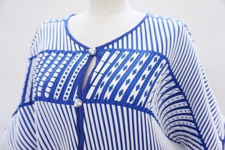 青と白のストライプとボーダー柄を組み合わせた、爽やかで新鮮なデザインでオシャレ上級者におすすめ。