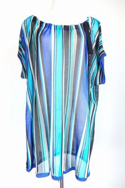 今回、アクイールにて買取させていただいたのは、マリナリナルディの鮮やかなストライプが目を引くチュニックワンピースになります。ふんわりとしているので、体型が気になる方にもオススメです。ワンピースとして着るのはもちろん、デニムなどのパンツと合わせてみるのも、違った雰囲気で楽しめるでしょう。