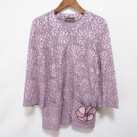 出張買取サービスにて斉藤都世子のカーディガンを買取しました。可愛らしく涼しくもあるカーディガンです。所々に感じるお花も愛らしさを引き立ててくれます。