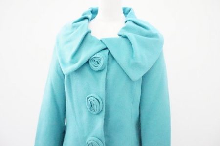 ボタン部分がお花風であったり、大きめ襟などディテールにも非常にこだわったデザインで、エレガントありながら非常に可愛い女性らしさが演出できます。