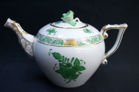 ヘレンドのティーポットを買取しました。爽やかな白にさわやかなグリーンがよく映えた素敵なティーポットです。おもてなしするのも楽しくなってしまいそうですよね。ホッとできるティータイムに気分の上がるティーポットで有意義な時間を過ごしてみてはいかがでしょうか。