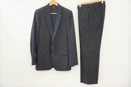 今回買い取り査定させていただいたディオールオムのピンストライプスーツは、黒に近い濃グレーの生地でできている一着です。