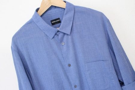 今回は、そんなジョルジオアルマーニの爽やかな青色のメンズシャツを買い取りさせていただきました。