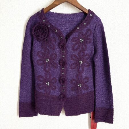 ノコオーノのカーディガンを買取しました。出張買取です。濃く上品な紫が大人の魅力を上げてくれます。お花モチーフをプラスすることで綺麗にまとまるのがいいですね。