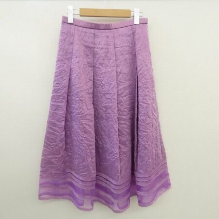 出張買取にてユキコハナイのスカートを買取しました。サイズは10です。しっとりしたフリルで可愛らしい印象。柔らかめの紫にも心惹かれます。シワ加工なのも動きやすくていいですね。