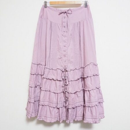 出張買取ご利用のお客様よりピンクハウスのスカートを買取しました。ピンクに近い優しい紫が印象的です。ロング丈ですので大人っぽさも出していただけます。お約束のフリルもいい具合に広がりますね。