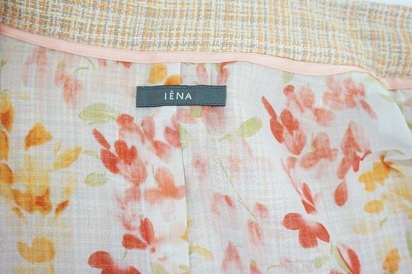 今回、こちらでご紹介させていただくのは、イエナのレディース向けコートになります。淡い色合い、そして大き目のボタン、七分丈の袖が特徴のこちらのコート。最大のポイントは、裏地の花柄ではないでしょうか。