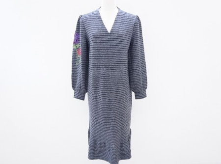ワンピースの右の袖部分のみにあしらわれた花柄が可愛らしいボーダー柄ニットワンピースはサイトウトヨコのアイテムです。カジュアルでリラックスウエアにもよく使われるボーダーデザインは幼くベーシックになりがちですが細身のボーダーなので大人でも着易いデザインになっています。首回りはスッキリとしたVネックでアクセサリーとの組み合わせも楽しめる1枚。