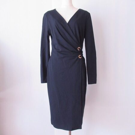 カシュクールデザインがキュートでしっとりした印象になるワンピース。アパレルブランドはエスカーダです。出張買取にて買取しました。暗すぎず明るすぎず紺がまた大人度をいい具合にあげてくれます。ざっくりした首元には大きめのネックレスやストールを巻いても素敵。いろいろなコーディネートを作っていただけます。
