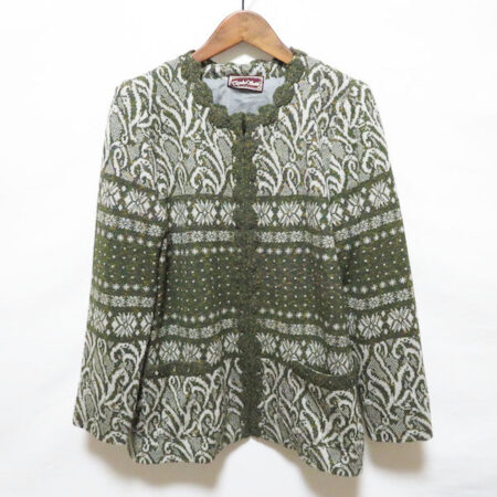 斉藤都世子のジャケットを買取しました。買取方法は出張買取です。グリーンの深みがなんとも言えません。ハイネックのカットソーを合わせてもいろんなバリエーションが楽しめます。