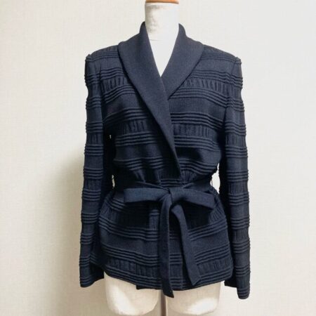 ミセスに人気のセントジョンのジャケット。出張買取ご利用のお客様より買取しました。落ち着いた紺と個性的なデザインが馴染んだジャケットです。おしゃれさを取り入れつつ軽やかに着ていただけます。ベルト付きです。