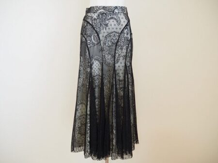 チャコットのスカートを出張買取ご利用のお客様より買取しました。ダンスなどの衣装としても使っていただけるブランドのチャコット。動くたびにはかなく揺れるデザインのスカートです。総レース×黒色なので透け具合と圧迫感のバランスが程よく保たれている素敵な1枚。