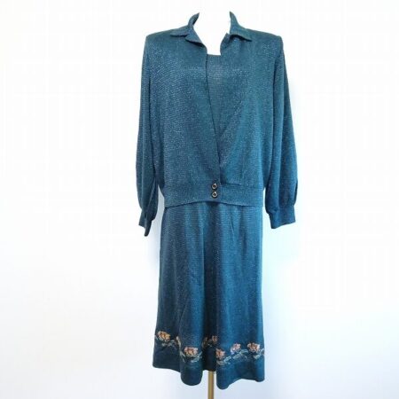 出張買取にて斉藤都世子のセットアップを買取しました。安定感抜群のグリーンと裾部分の花柄の可愛さがキュートなセットアップ。デザインもしっとりしていていうことなしのアイテムです。