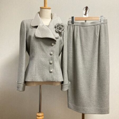 出張買取にてイネスのスカートスーツを買取しました。サイズは38です。グレー一色なのにしっかりとした存在感が残ります。大人のできる女性のスタイルといっても過言ではありません。ずっと美しさを保てるありがたいアイテムです。