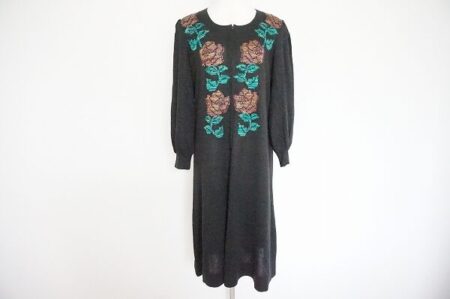 リサイクルショップ・アクイールでも人気の為、買取に注力しているサイトウトヨコ 斉藤都世子のニットアイテム。今回は昨シーズンの秋冬に袖を通さなかったアイテムを整理整頓中に見つけたから査定をして欲しいと言うお客様からご相談をもらい査定させて頂きました。ラメが上品で華やか、大輪の薔薇柄が女性らしい雰囲気の長袖ワンピースです。買ったものの昨年だけでなく使用頻度が全体的に少なく美品状態でしたのでお客様も納得のいく金額で買取させて頂きました。