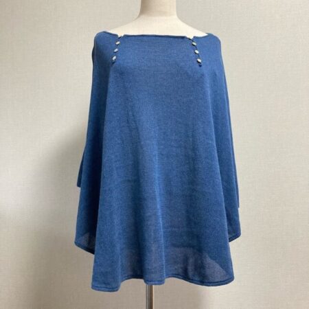 出張買取で群言堂 根々 ポンチョ風 紺のニットを買取しました。柔らかい雰囲気ながらもどこか上品さもあるニットです。裾の広がりが綺麗で見ているだけでもテンションが上がります。タイトなパンツも合わせていただきたい1枚ですね。