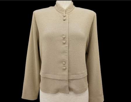 初めてのリサイクルにアクイールを選んで下さった御客様より詩仙堂のベージュ色のジャケットを買取させて頂きました。スタンドネックできちんと感がありますが裾周りのデザインや柔らかく肌馴染みの良いベージュが柔和な雰囲気も演出してくれます。寒い秋冬は勿論、春先や夏場の冷房対策としてオールシーズン着まわせる色味と素材は買って後悔はしません。