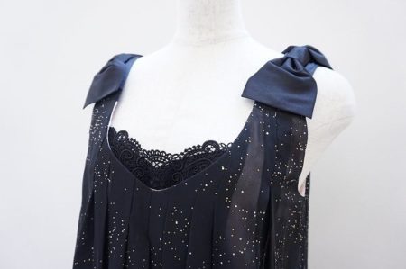 胸元のレースや肩口のリボンデザインなど、甘いディティールがたくさん散りばめられたこちらのワンピースは、スコットクラブのもの。