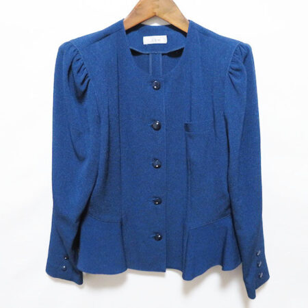 出張買取にて三年坂のジャケットを買取しました。濃いめのブルーに圧倒されます。デザインも肩部分が膨らんでいるので華奢な方も着やすいのが魅力です。カジュアルですがマダムなテイストに仕上げていただけます。