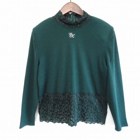 伊太利屋のセーターを買取しました。サイズは13です。何よりも心落ち着く色っぽい深緑がポイント。下の方にレースの装飾もあり、バランスがいいセーターです。しっかりハイネックなのも寒さに弱い女性にはありがたいポイント。