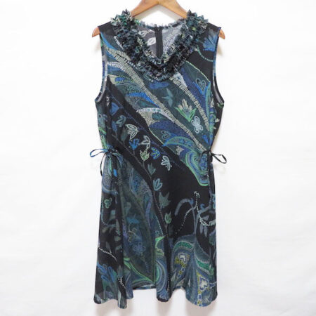 出張買取サービスにおいてトクコのチュニックを買取しました。黒、緑、青のバランスが綺麗にまとまった上品な1着。ラインも豪勢で着ていて姿勢がピンとなりそうです。ノースリーブでさわやかに決められるのもいいですね。