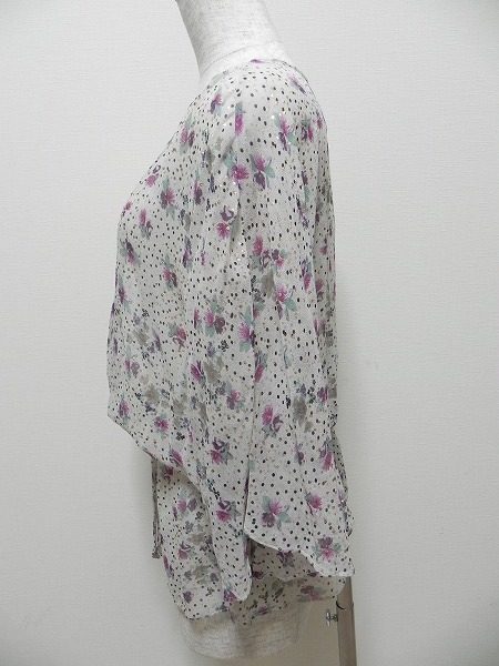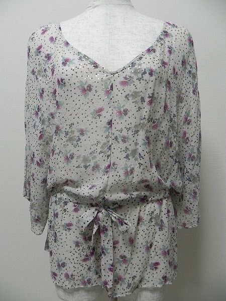 今回ご紹介させていただくのは、エモラスのトップスです。キラキラと輝いており、花柄のデザインが華やかなお品物となっています。シフォンっぽい軽い素材なので、オールシーズン活躍してくれます。