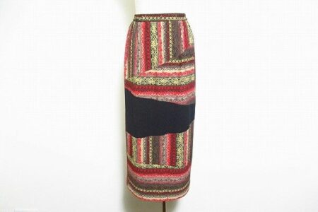 様々な色を使用した綺麗な色合いが魅力的なスカートを出張買取ご利用のお客様より買取しました。詩仙堂ならではの明るい雰囲気を感じられるスカートです。スカートに使っているお洋服のカラーのトップスを持ってくるのも素敵ですし、モノトーンでシックに決めるのもおすすめ。高級感溢れるコーディネートが出来上がります。