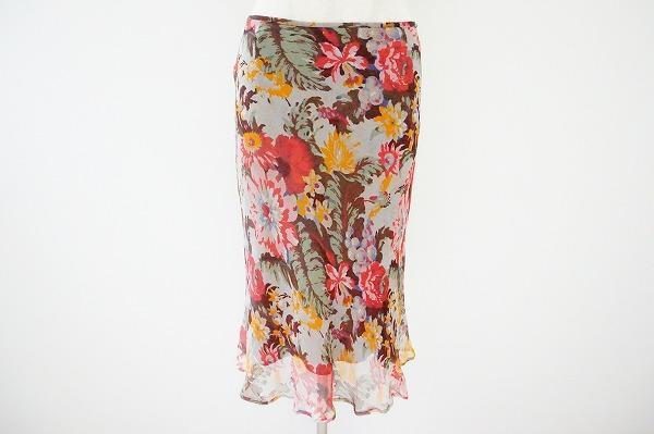 今回、こちらでご紹介させていただくのは、アナイのスカートになります。色使いが華やかではあるものの、派手過ぎずに適度に個性を放っています。ビビッドなカラーではありますが、シルク製でふんわりと優しい雰囲気も感じられるので、普段明るいお色味のお洋服を着ない方も、抵抗なくお召しいただけるかと思います。