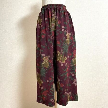 中国地方にお住まいの方より詩仙堂のパンツを買取しました。品のいいボルドーカラーに心も癒されます。お花柄とのバランスもばっちりです。ワイドパンツならではの広がりも素敵。