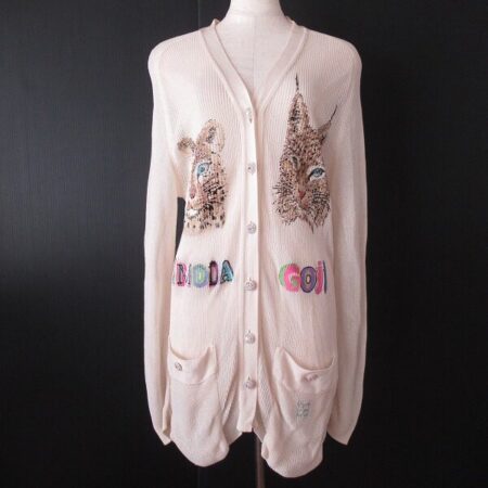 伊太利屋のカーディガンを宅配買取にて買取いたしました。万能カラー白に動物が優しく載った1枚。長い丈でチュニックのようにも着られる幅広いアイテムです。真っ青なジーンズから、ダークトーンのジーンズなどと楽しんでもいいですね。