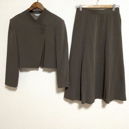 出張買取にて三年坂のスカートスーツを買取しました。サイズはMです。濃い茶色が渋いスカートスーツ。その渋さに引っ張られることなく、可愛らしさも出していただけるかと思います。