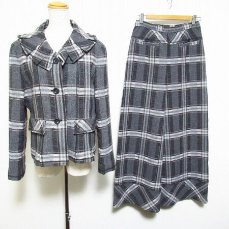 味わいあるチェックが素敵なイークラットのセットアップ。出張買取ご利用のお客様より買取しました。チェック具合も丁度よくパンツスーツスタイルなので上品さも取り入れることができます。大人のおしゃれの1着として持っておきたい1セットかもしれません。