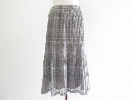 女性の繊細さを引き出してくれるプリーツプリーズ。今回出張買取にて買取したスカートは落ち着いたグレーがシックな1枚です。デリケートで女性の柔らかさを演出してくれます。ピンクやグリーンの明るいトップスを合わせても落ち着いた雰囲気にしてくれます。