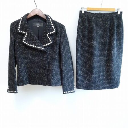 出張買取にてイネス 銀座マギースカートスーツを買取しました。40サイズ、黒とツイードのバランスが最高です。襟もパールの輝きが感じられるので丁度いい具合に煌びやかさを演出できます。
