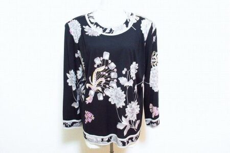 レオナール シルクカットソーを出張買取ご利用のお客様より買取しました。世界で最も美しいプリントともいわれるレオナールのプリントアイテム。豪華な雰囲気と華やかさを感じパーティなどにも重宝されるアイテムが特徴です。見ているだけでうっとりしてしまうカットソーをご紹介いたします。落ち着いた黒ベースにほどよく敷き詰められたお花が何ともエレガント。ジャケットの下に着ても素敵さを隠せませんね。