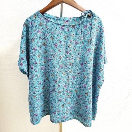 詩仙堂のカットソーを買取しました。小柄で可愛らしさが詰まったお花が魅力的。鮮やかなブルーも見逃せないポイントではないでしょうか。紺色や黒のボトムスとしっとり合わせてもいいですね。
